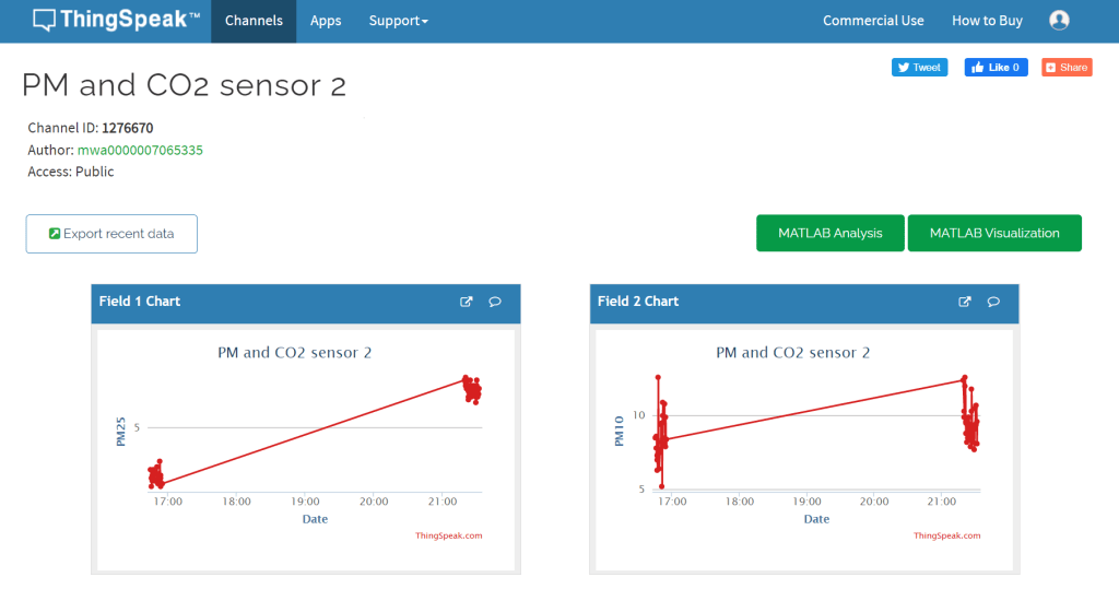 We will send you a link to a ThingSpeak channel, from which you can monitor the air pollutant levels yourself.